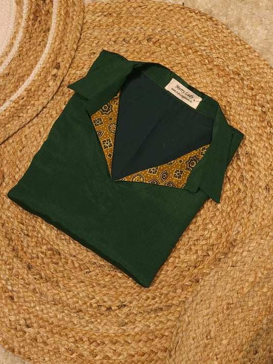 Semi crepe silk A-line kurti detailed with ajrakh MBS-823 ** ready to dispatch**