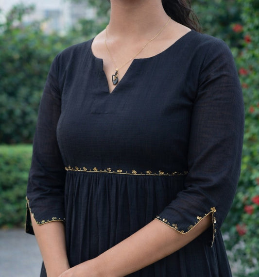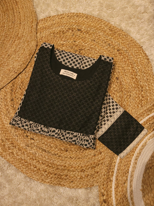 Black soft cotton kota checks kurti with handworked yoke and sleeves MBS-810