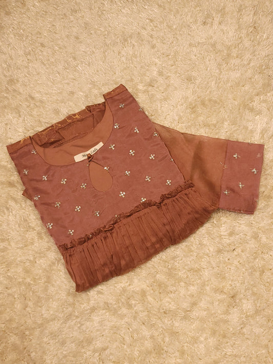 Latte shaded soft organza kurti with handworked yoke and sleeves MBS-282
