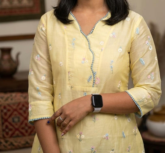 Yellow shaded chanderi Aline kurti/dress with floral thread embroidery detailings MBS-872 ***Ready to dispatch***