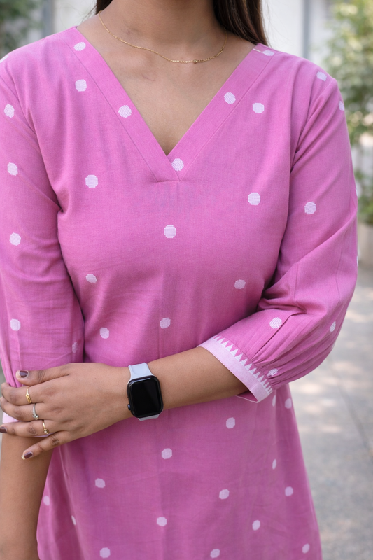Pure cotton kurti with jamdhani woven buttas and border in fuchsia shade MBS-853 **Ready to dispatch**