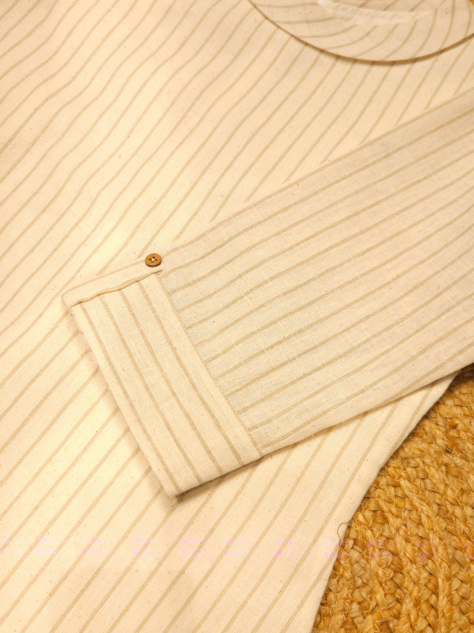 Cream shaded striped natural linen slitted kurti with folded collar MBS-781 ** Ready to dispatch **