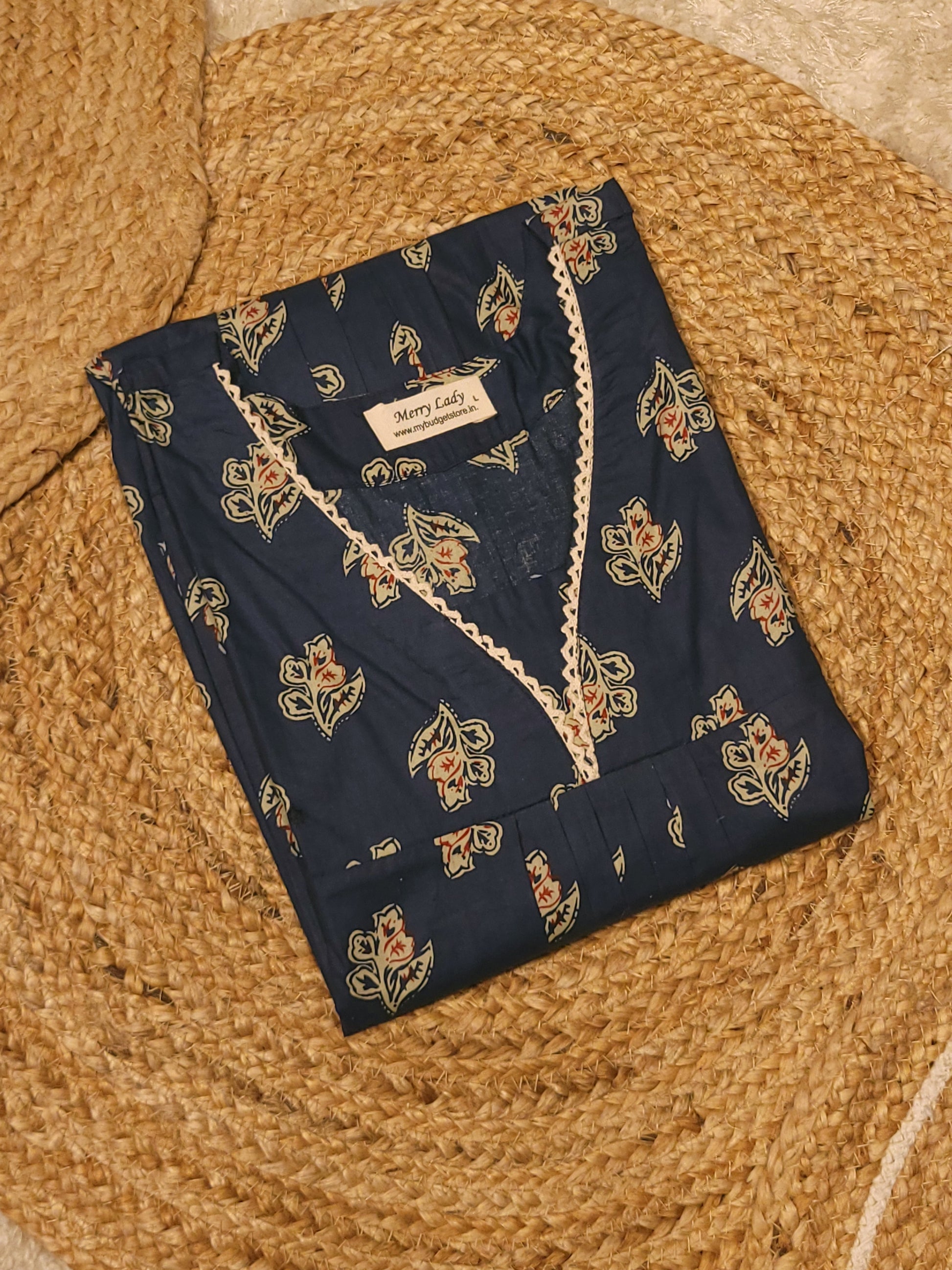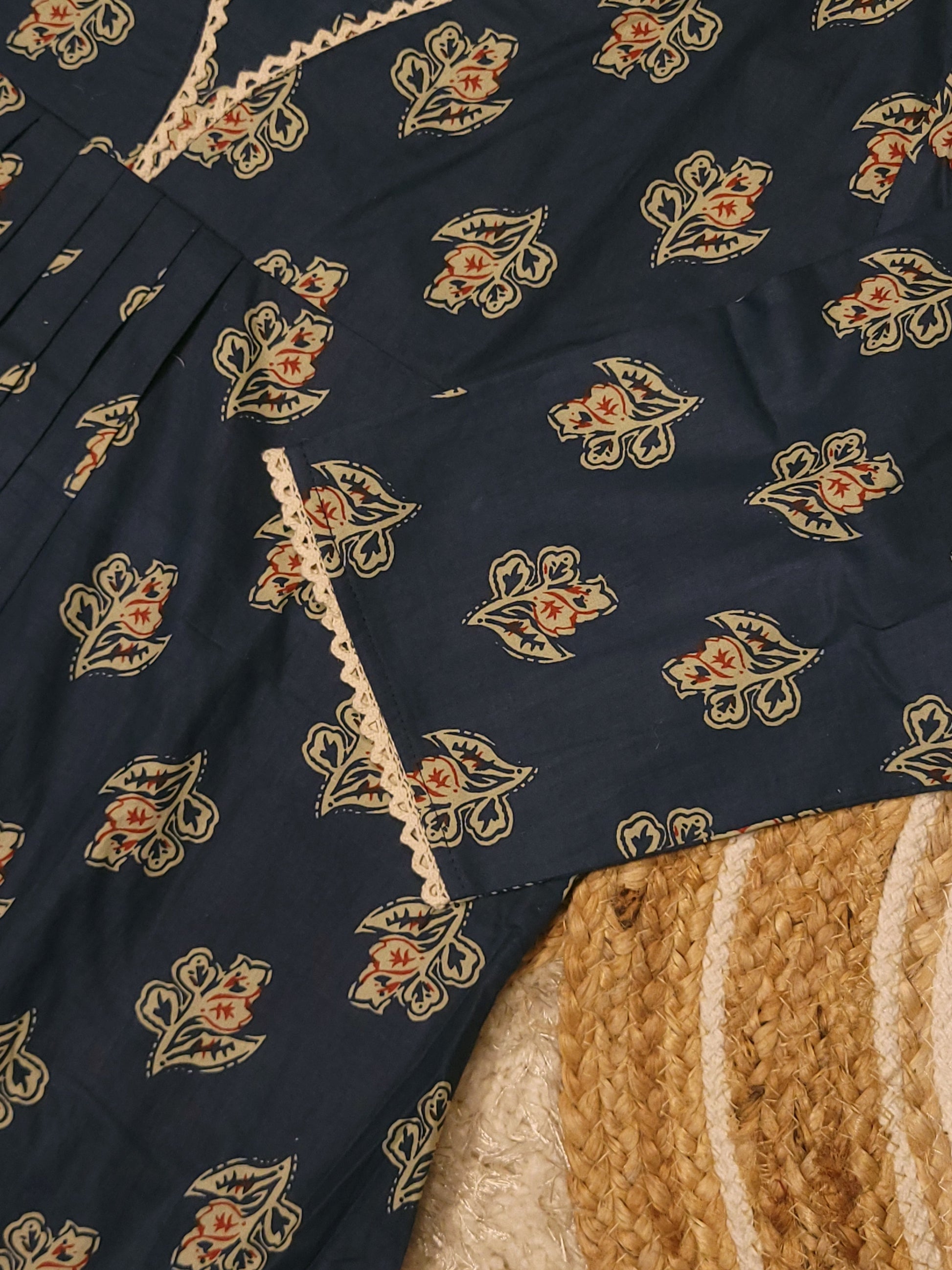 Floral printed cotton A-line kurti with lace detailed neck MBS-816 ** ready to dispatch**