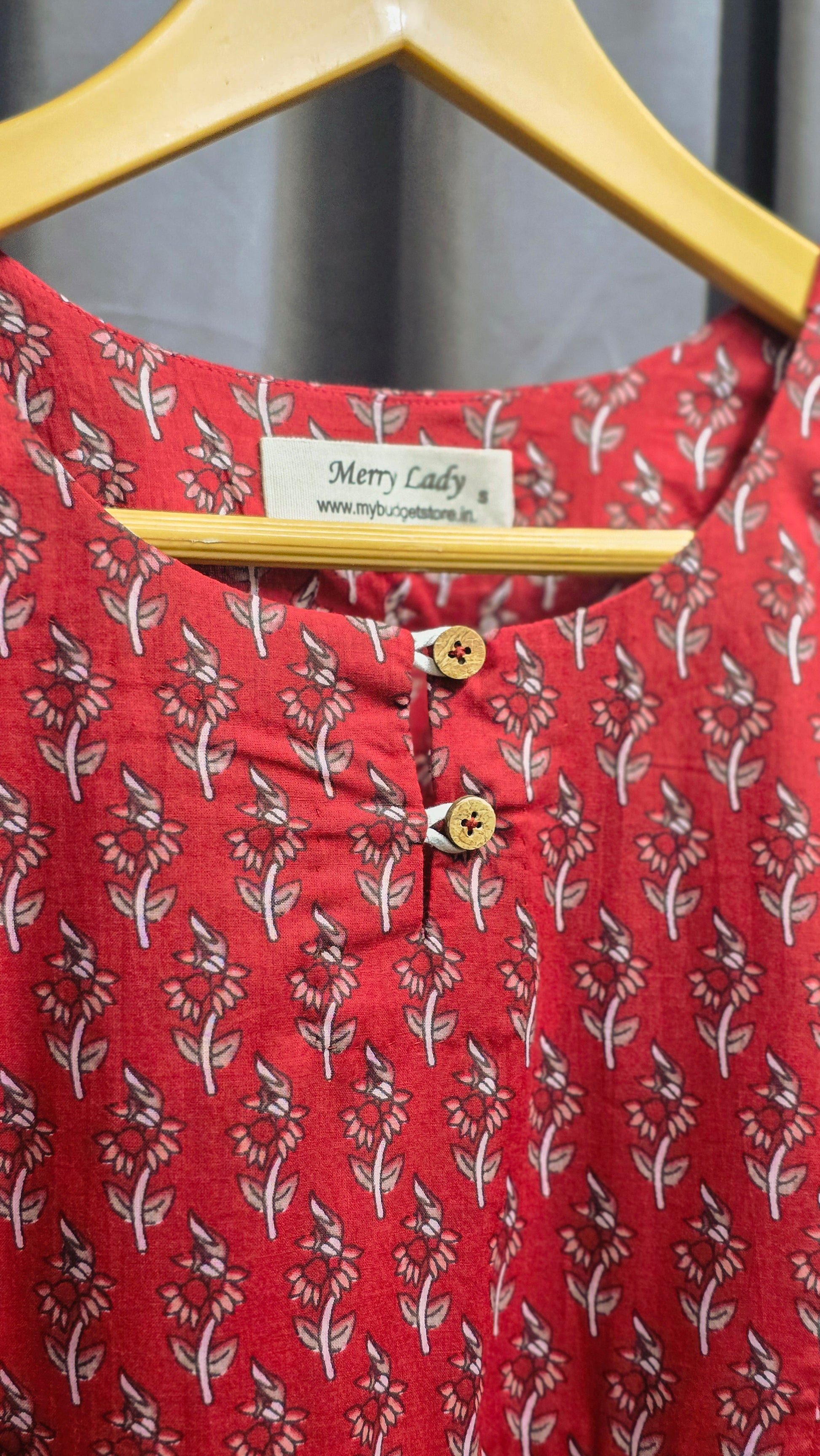 Floral printed cotton Aline kurti with princess cut yoke and gathers in maroon shade MBS-680 ** Ready to dispatch **