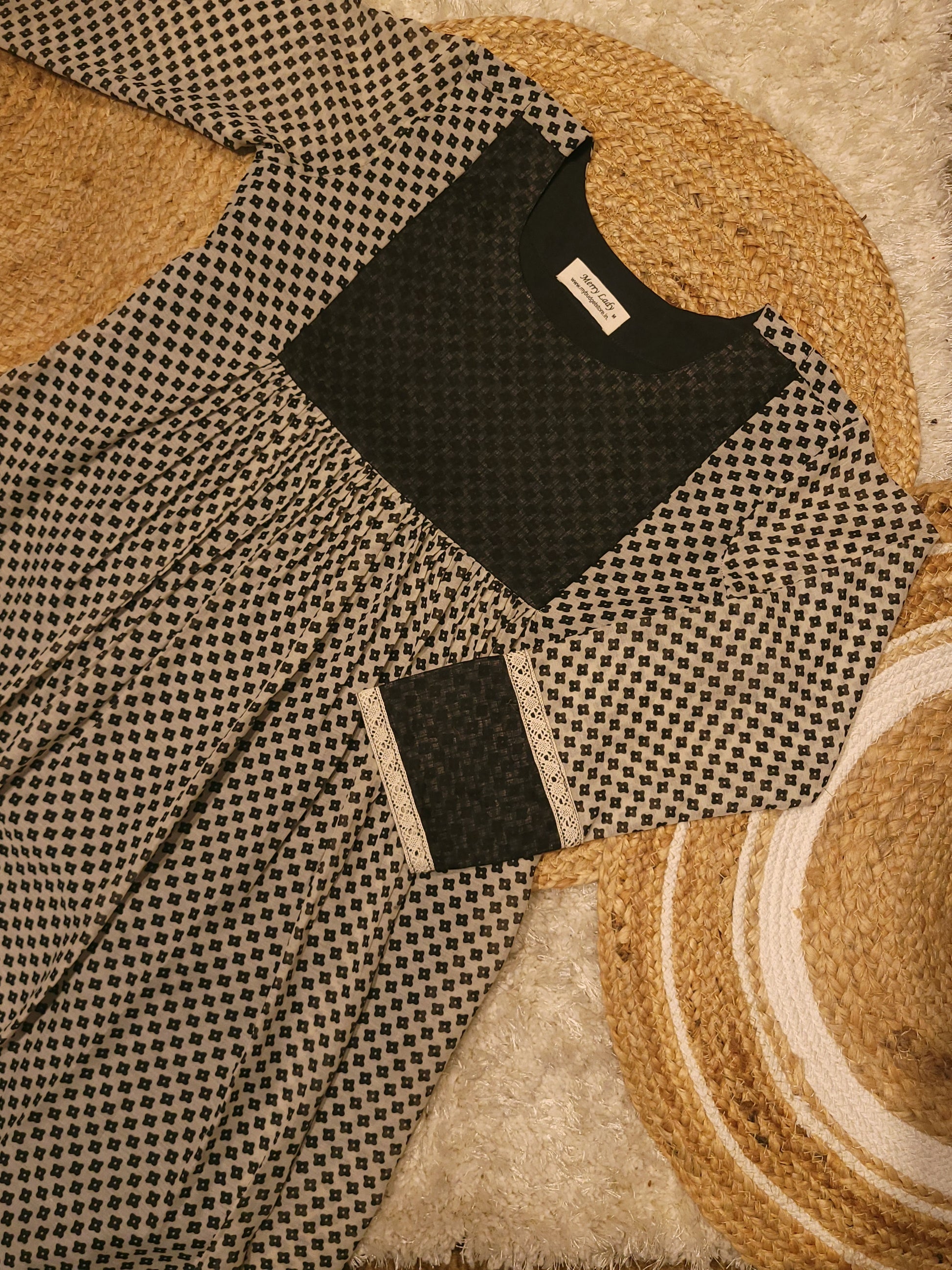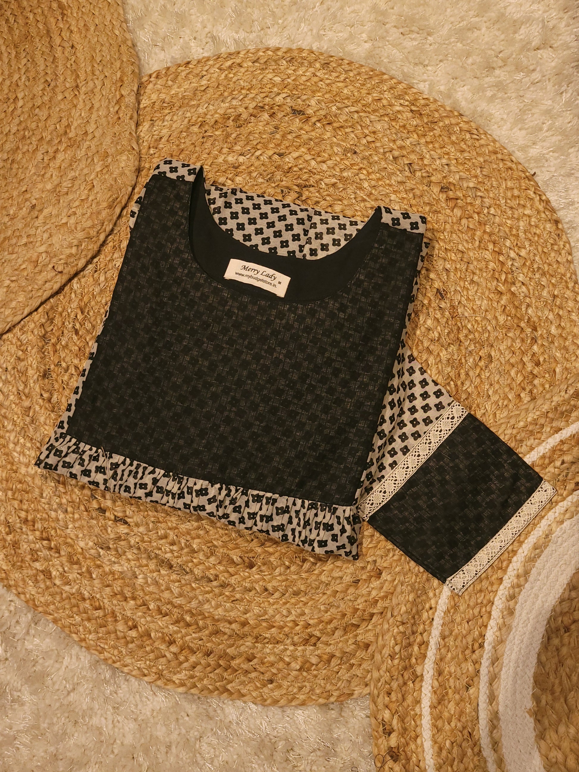 Printed soft cotton voile kurti with lace detailings MBS-814 ** ready to dispatch**