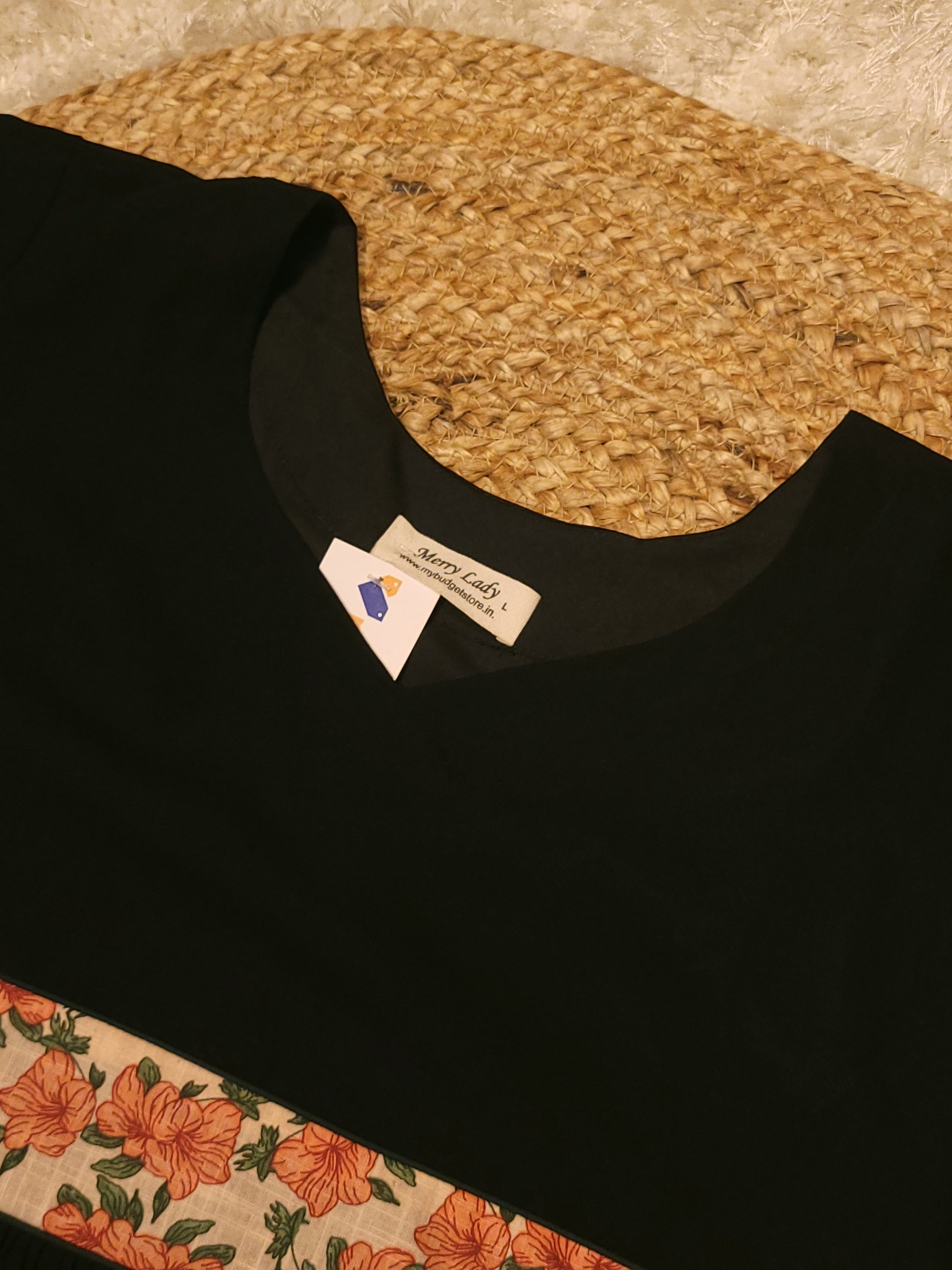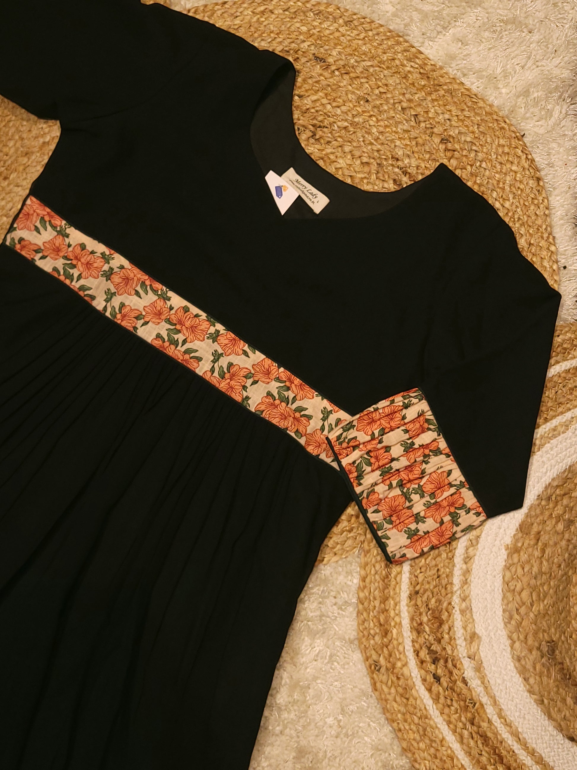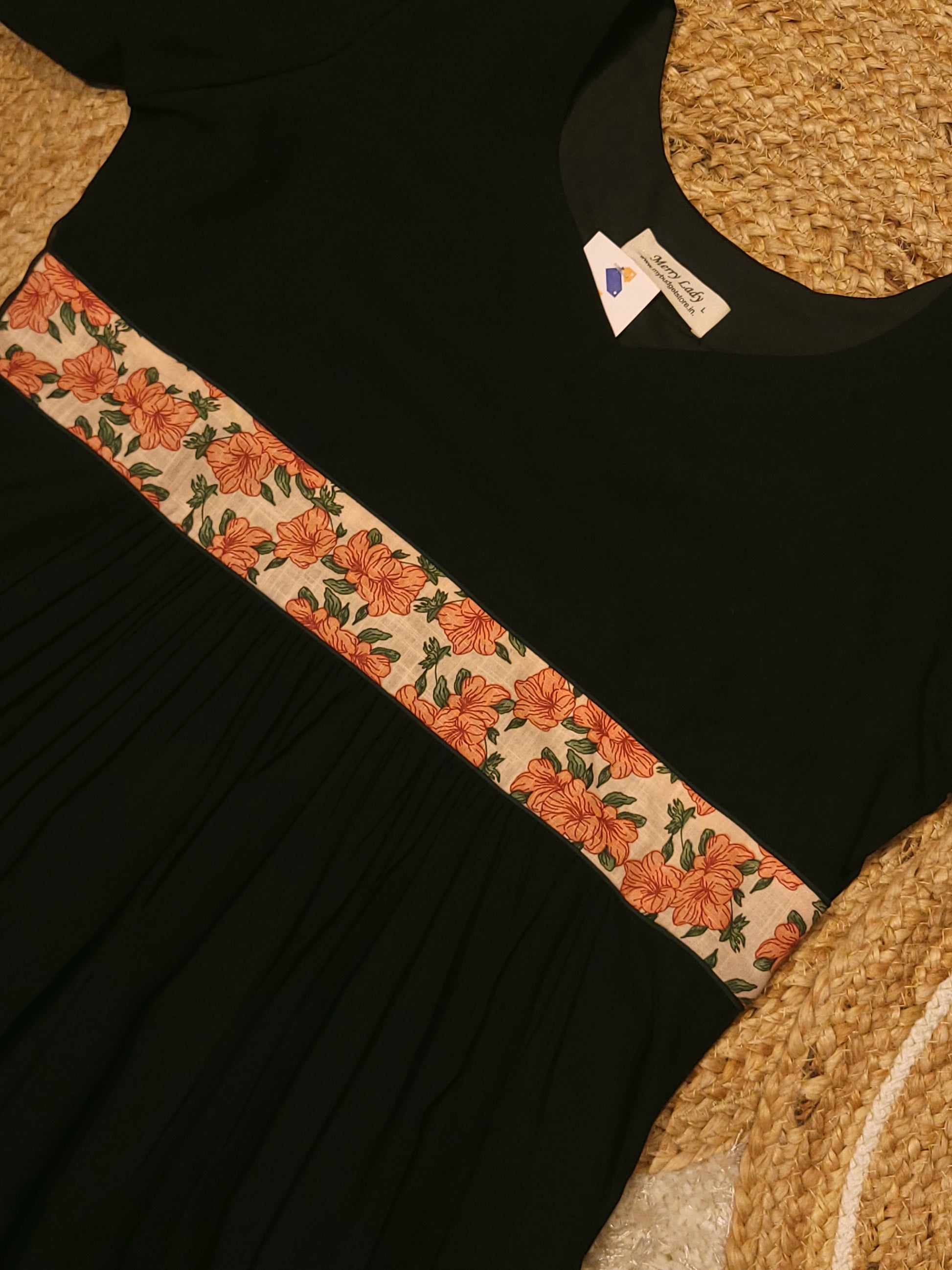 Black georgette A-line kurti detailed with floral printed cotton yoke and sleeve MBS-819 ** ready to dispatch**