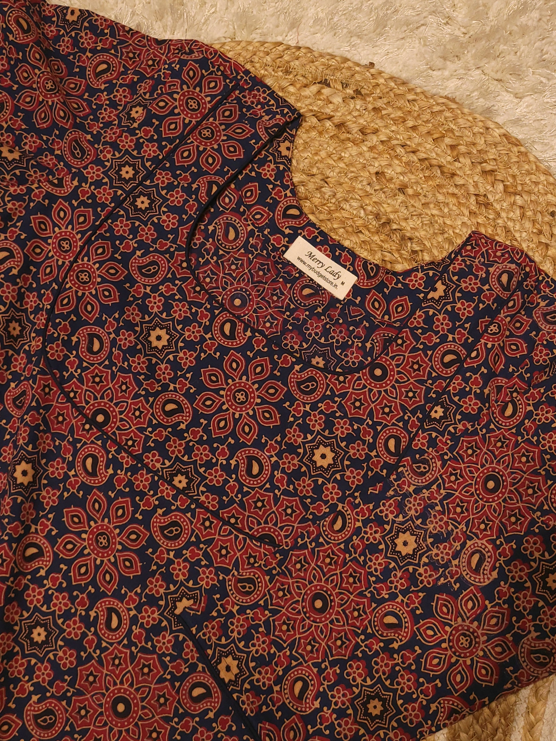 Cotton printed kurti with piping detailed yoke MBS-827 ** ready to dispatch**