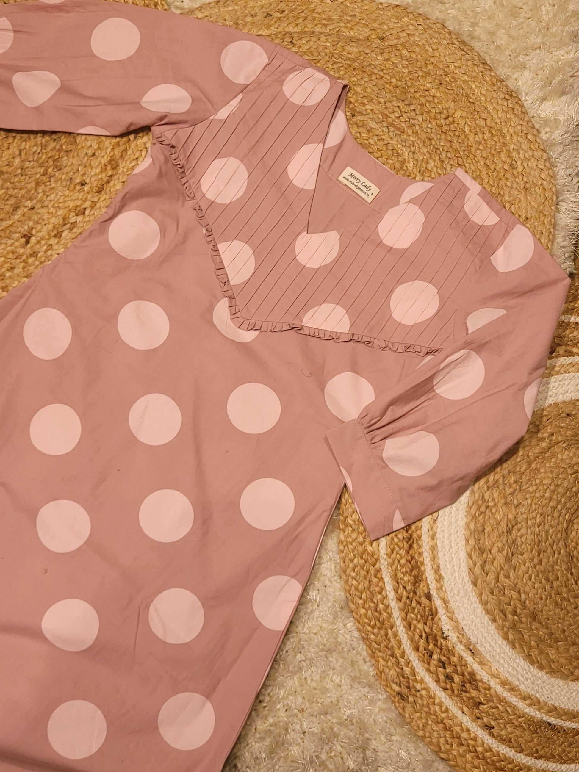Polka doted cotton satin dress with pleats and frills MBS-828 ** ready to dispatch**