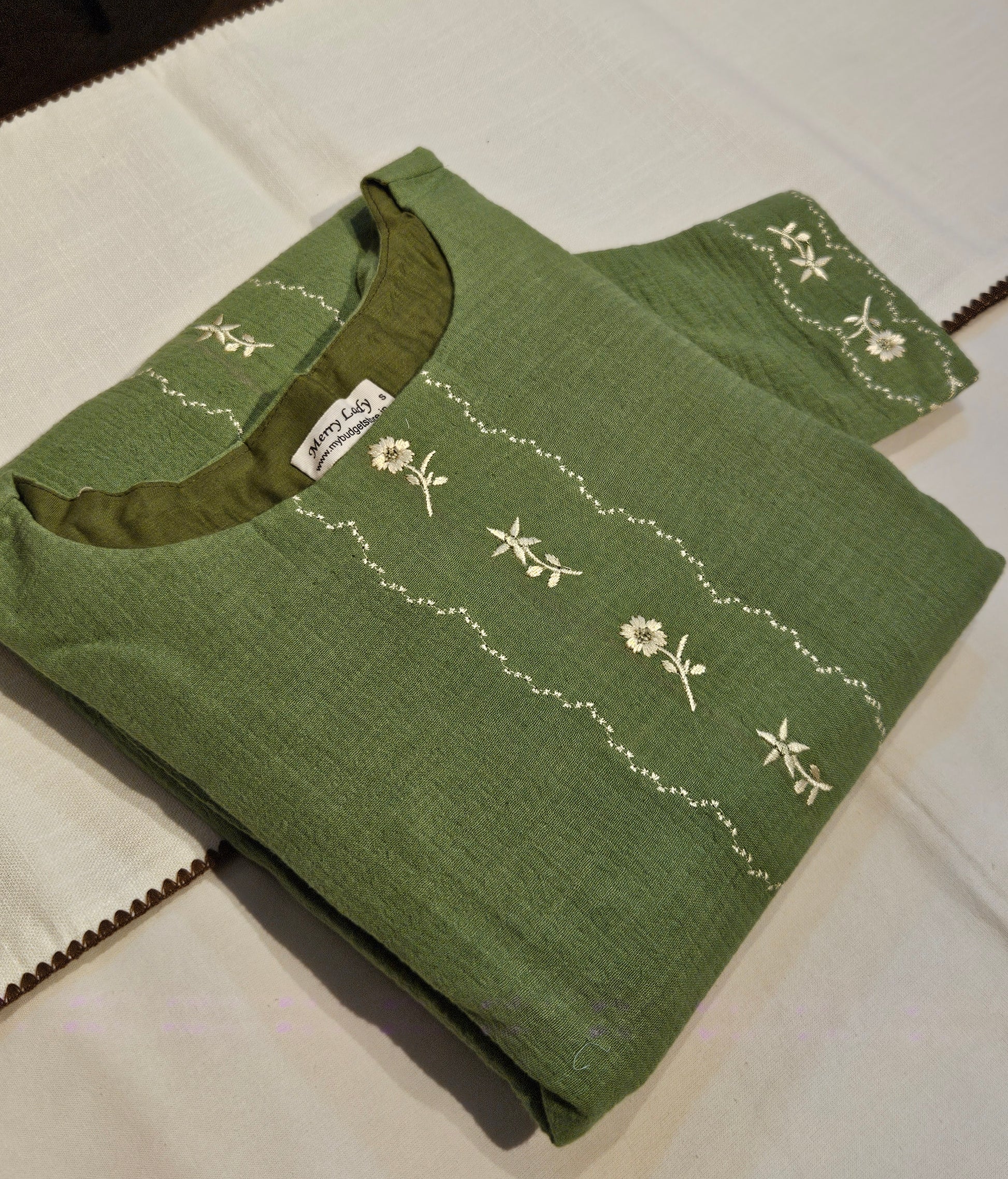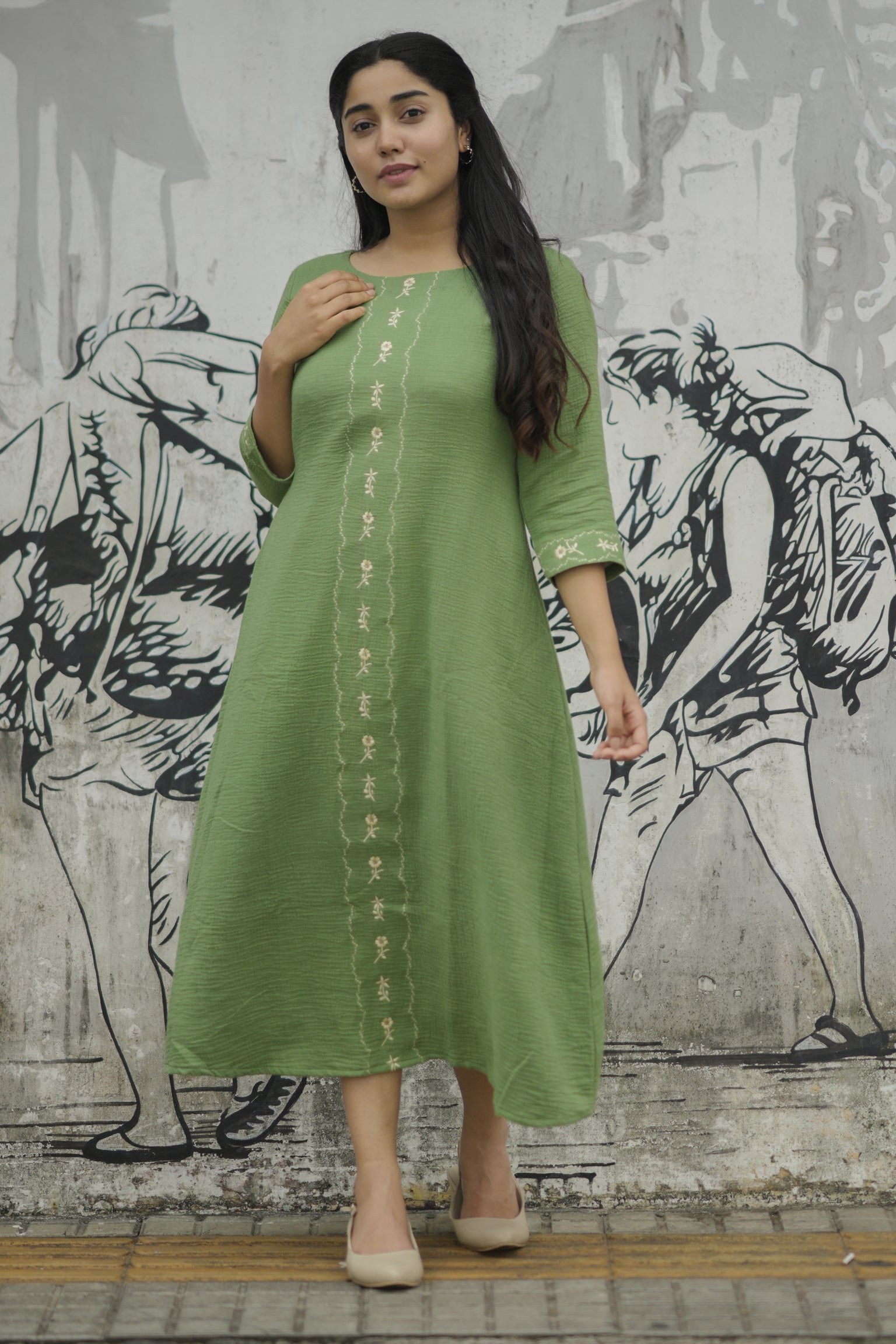 Pure cotton crushed kurti/dress in green shade MBS-714
