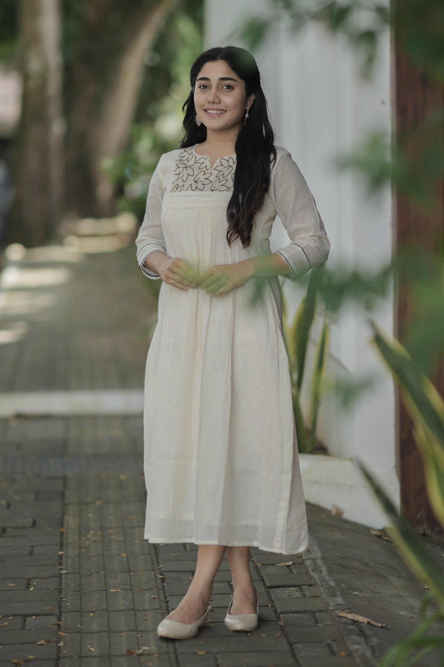 Soft cotton kota checks kurti with black floral thread embroidered yoke MBS-691