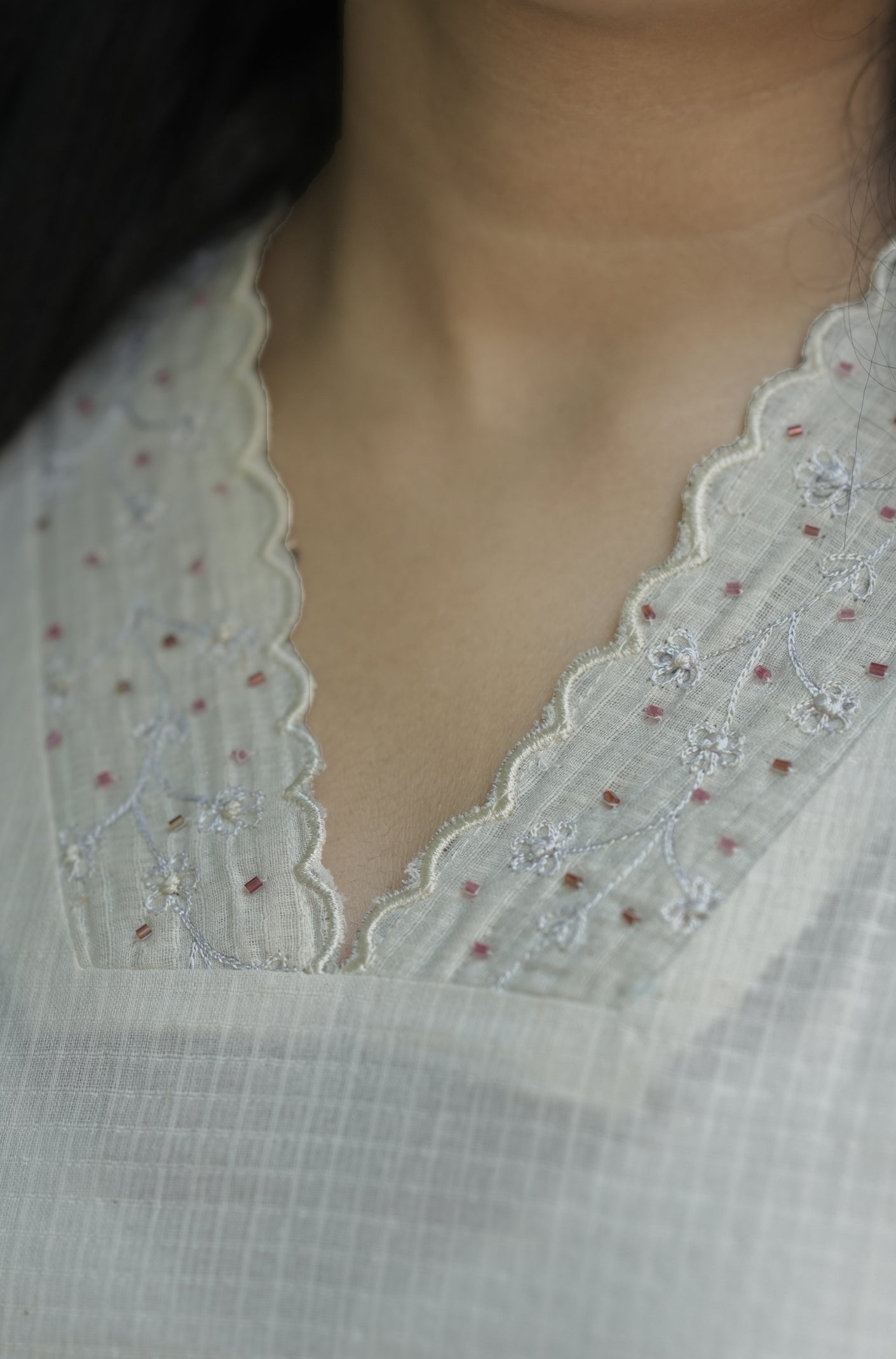 Soft cotton kota checks kurti with handworked collar neck and sleeves MBS-693