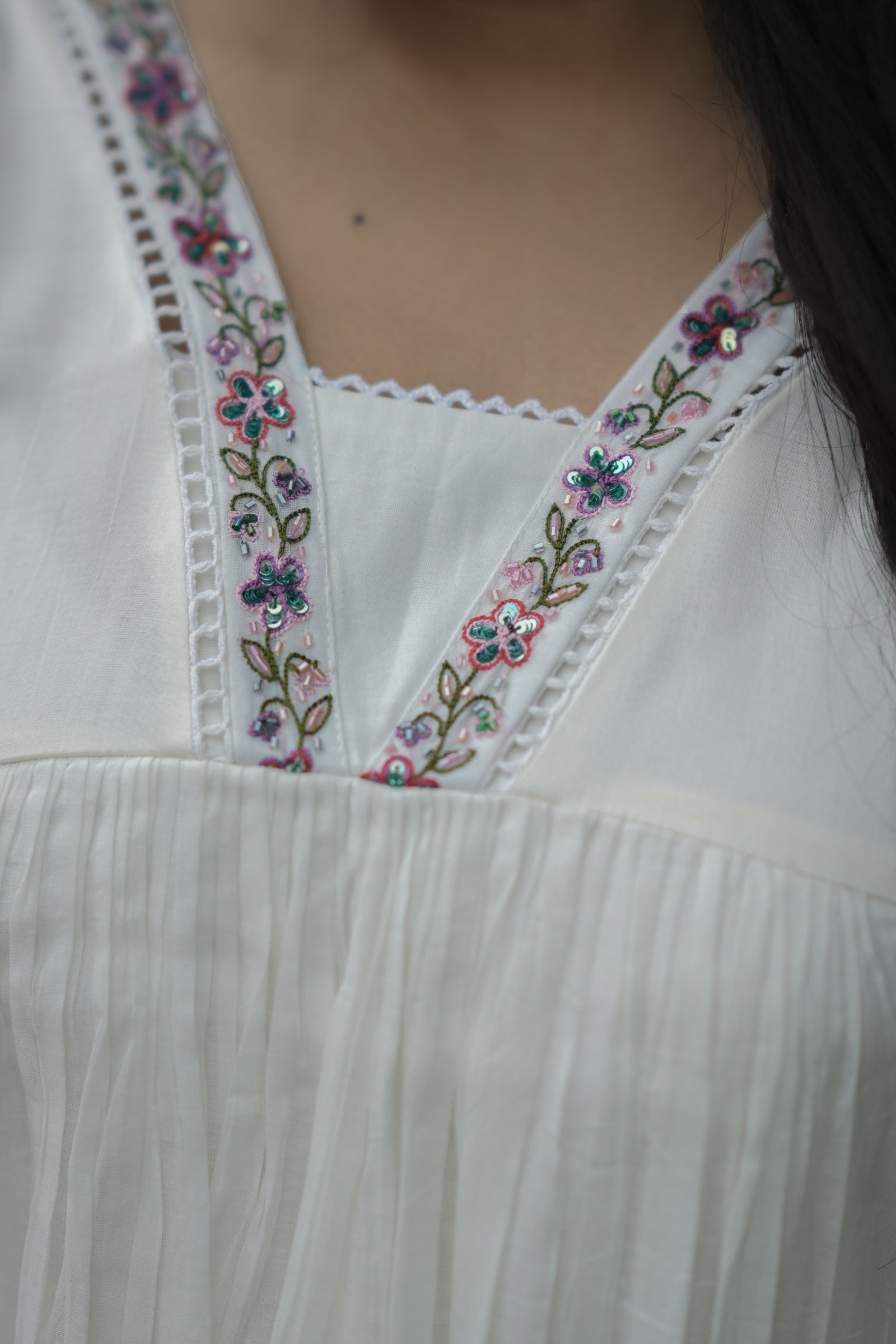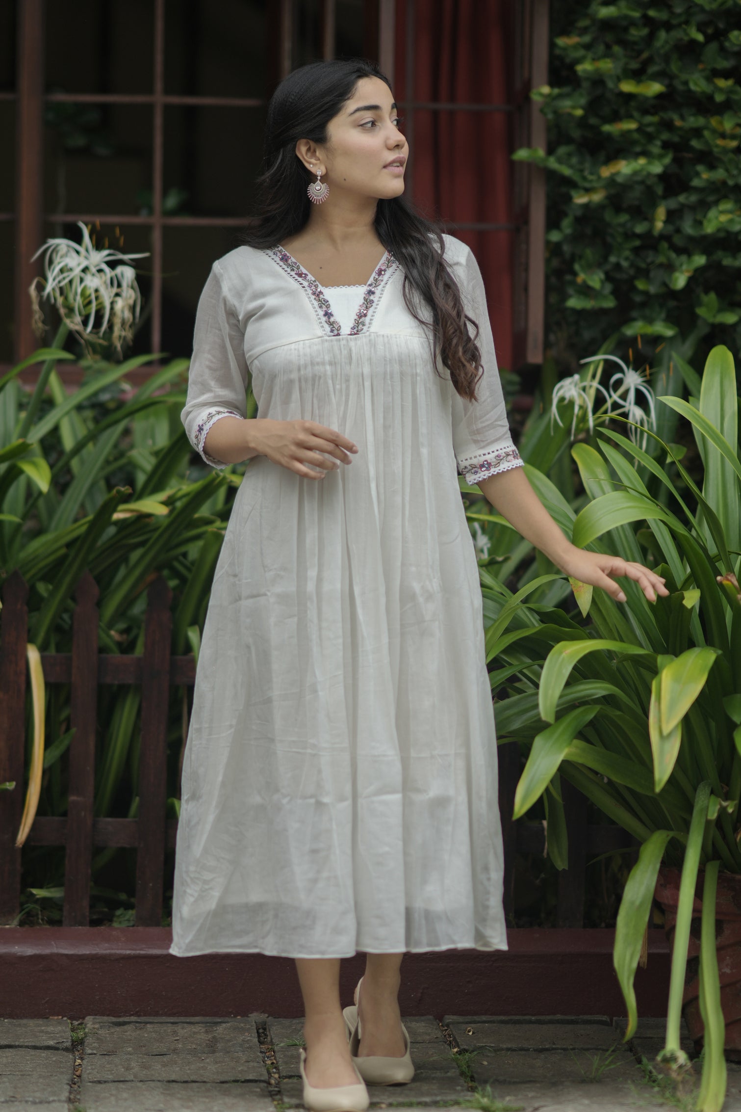 Soft mul cotton kurti/dress with handworked neckline and sleeves MBS-715